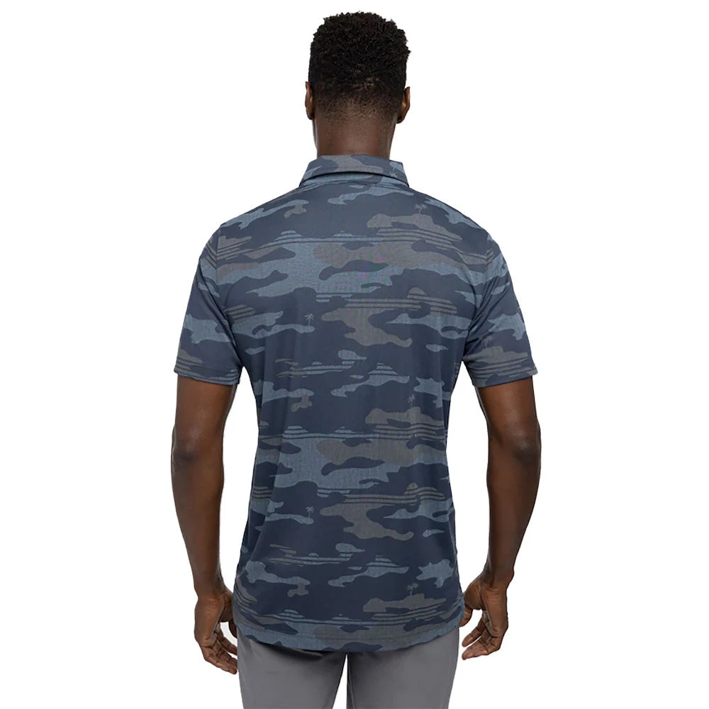 Take your golf style to the next level with the TravisMathew Heater Camo Mens Golf Polo. Designed with a linen-textured camo print and hidden palm trees, this polo will have you looking your best on and off the course. It features a built-in collar, custom corozo buttons for an elevated look, and a printed logo on the back yoke.
